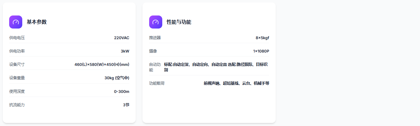 G30型ROV是一款30kg级小型观察级水下机器人,易于布放,满足民用化领域使用需求,可用于水产品养殖观测、搜捕及打捞等作业场景。产品小巧便携,具备定深定向控制功能,支持远程遥控,能实时将水下检测画面以及自身状态传输…