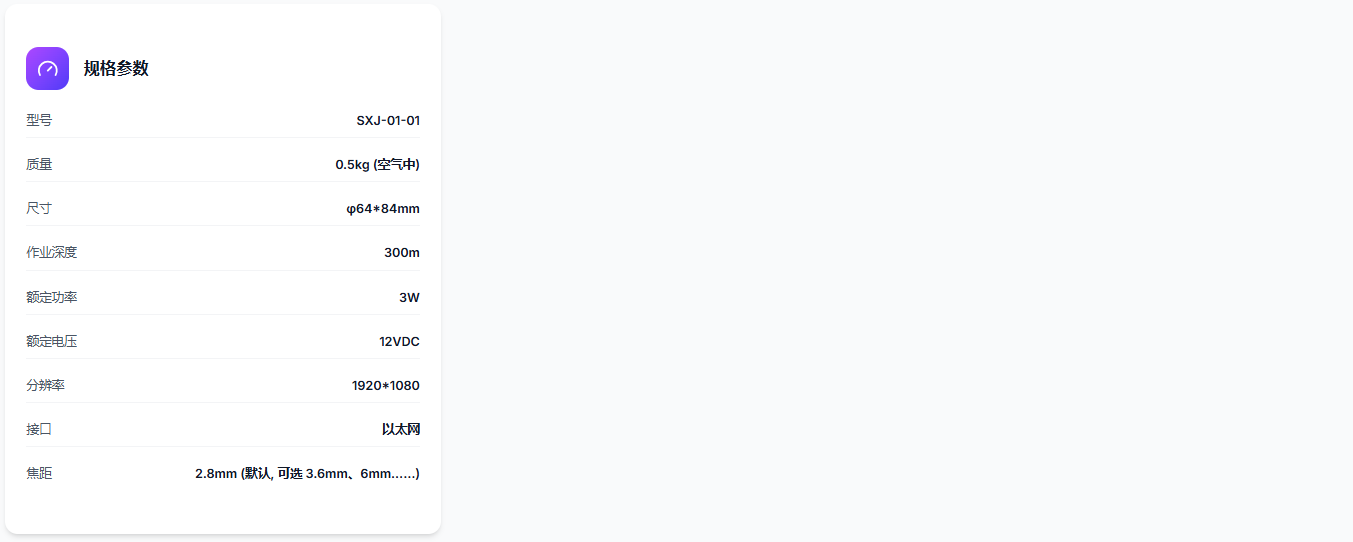 小型水下定焦摄像机,提供高清视频图像,适用于观察和监控。