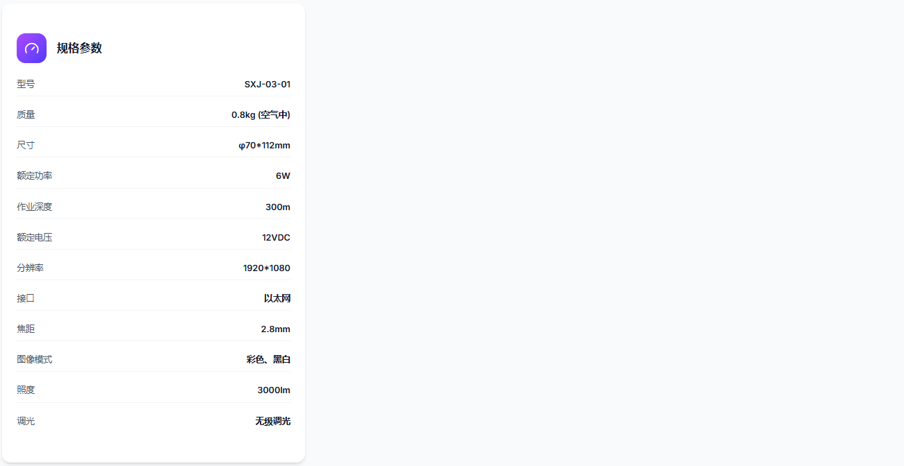 带补光功能的水下广角摄像机,提供广阔视野和照明,支持无级调光。