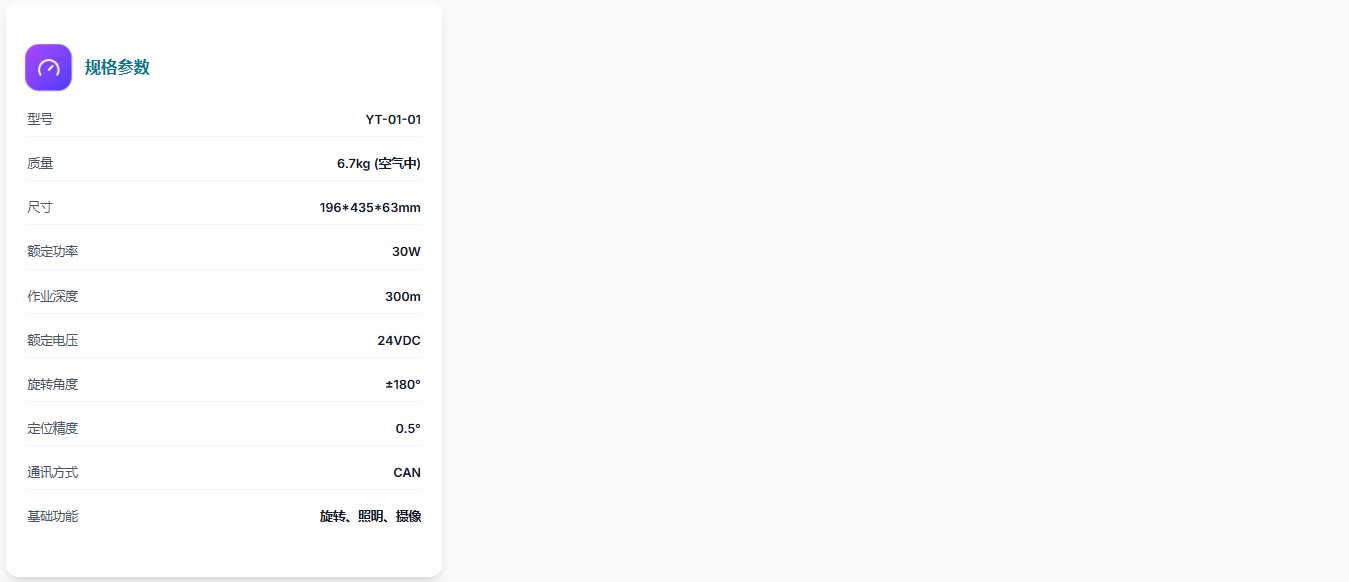 单自由度旋转云台,集成照明和摄像功能,可实现水平±180°旋转。
