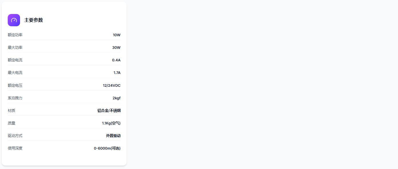 WhaleT30是一款静音水下推进器。采用低噪直驱电机和内置驱动方案,通过改良桨叶线型变化,使推进效率保持在80%以上,适合长航程低噪航行工况。采用硬质氧化、纤维增强型材料,抗腐蚀性能优良,外观精巧美观。广泛应用…