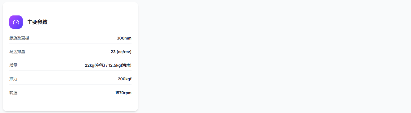 WhaleY0204k是一款紧凑**的液压推进器,推力达到200kgf。采用液压马达驱动,低转速高扭矩的设计提供了异常高的效率和近似相等的向前和反向推力。推进器安装有一个整体的安装底座,安装方便。密封装置安装在外壳上,便…