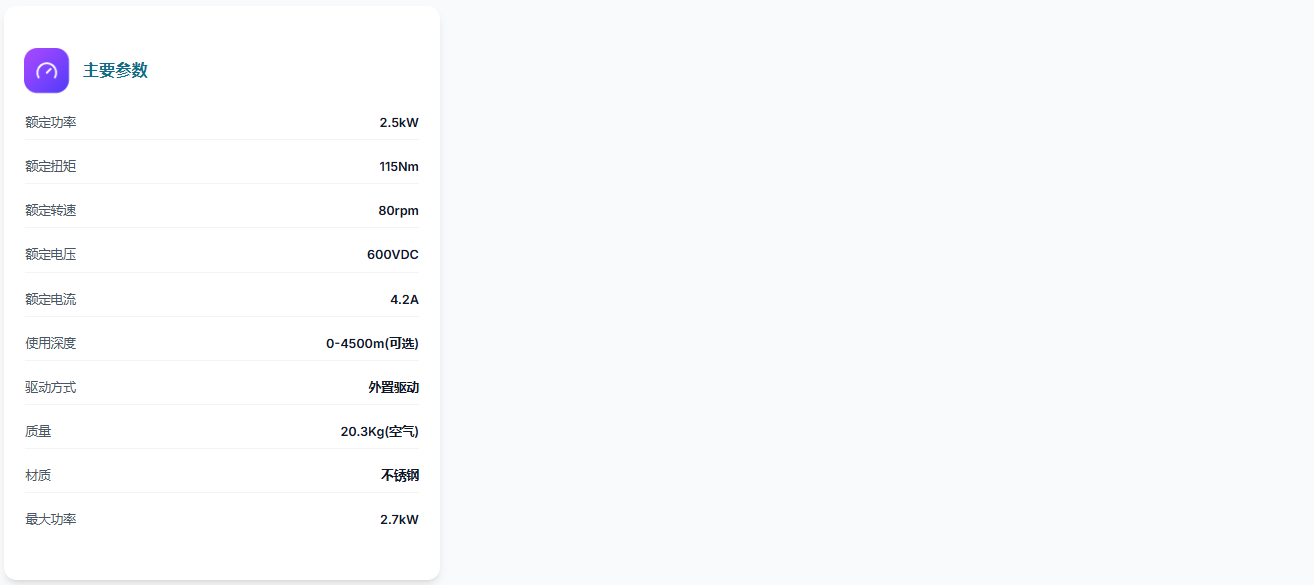 大扭矩水密电机,提供115Nm扭矩,材质为不锈钢,适用于恶劣环境。