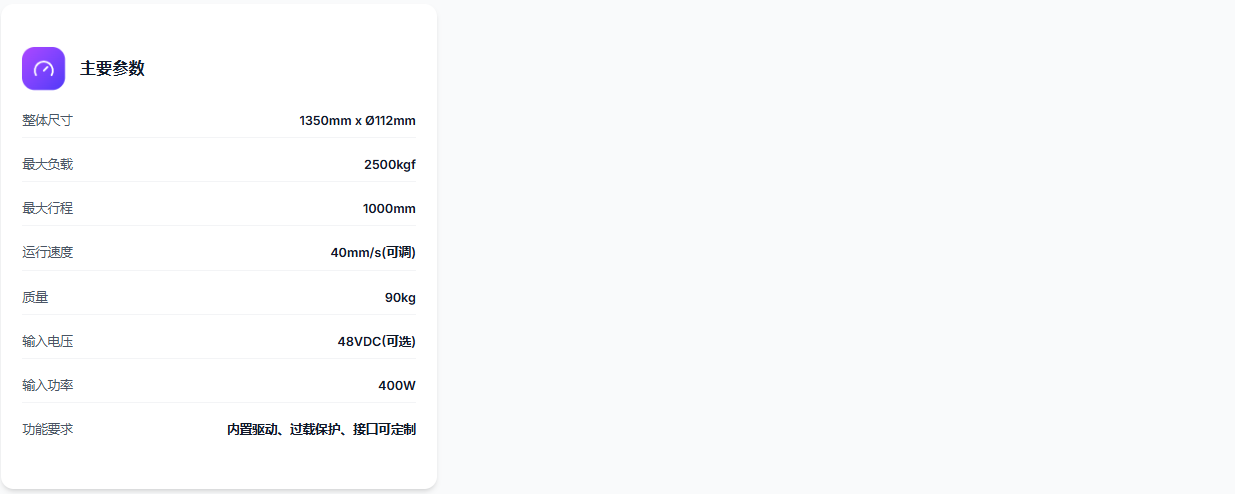产品选用定制直流永磁电机,结构小巧,坚固耐用,特别适用于行程较大、输出负载要求高的场合,同时机构具有自锁功能。采用全密封设计方案,能够**适应水下工作环境。采用较长的的导向环增加运行过程的抗干扰能力,提…